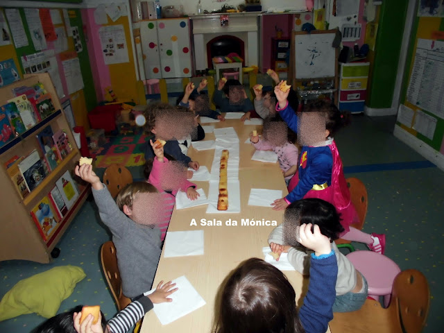 Fomos ainda surpreendidos pela mãe Sara que sabendo deste projeto preparou-nos um bolo em forma de comboio e proporcionou-nos um lanche muito especial...